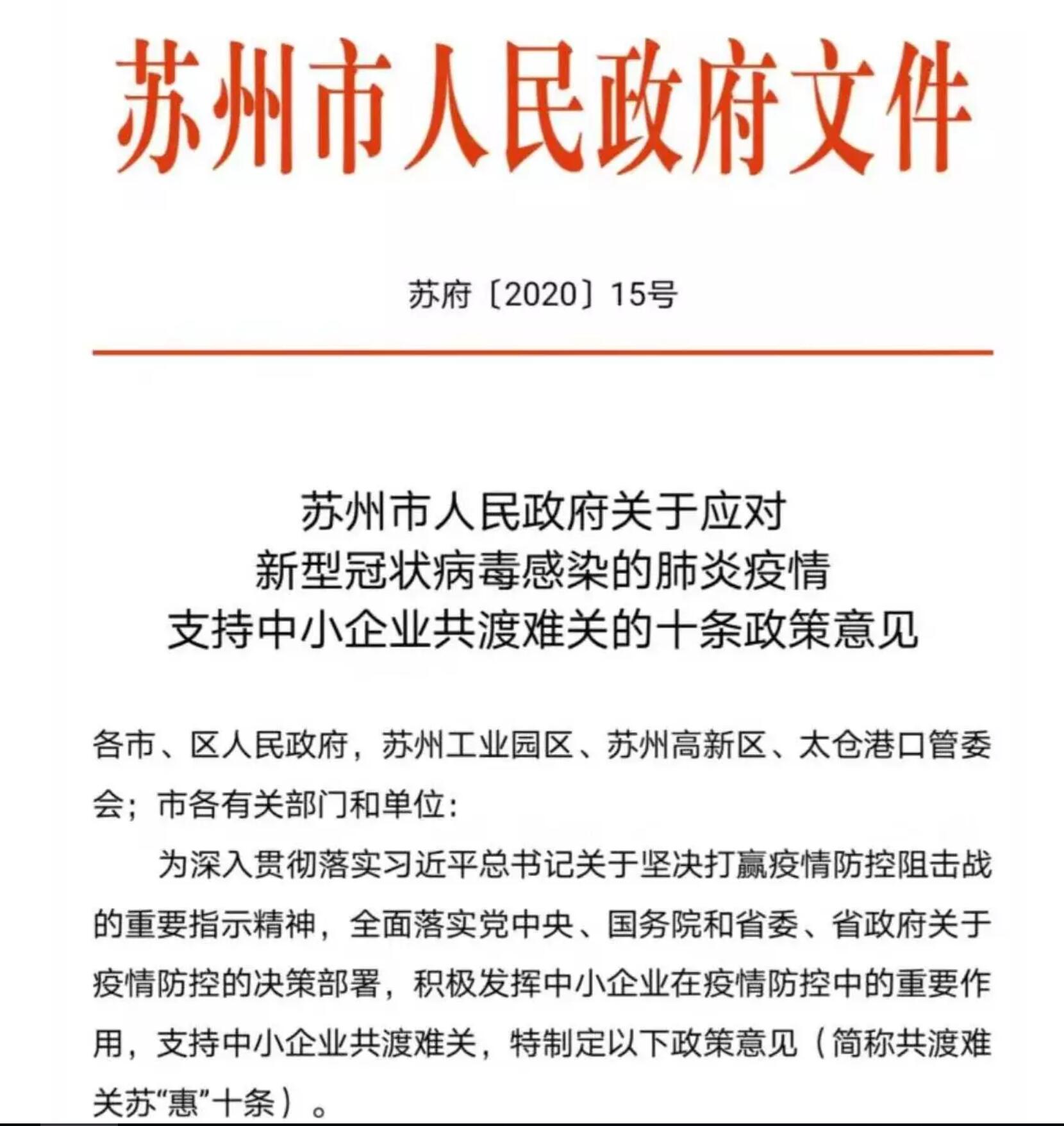 疫情期間蘇州重磅出臺(tái)支持中小企業(yè)共渡難關(guān)的十條政策